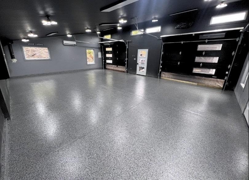 We repair cracks, pitting, imperfections then grind the floor smooth and install our epoxy flooring system.
